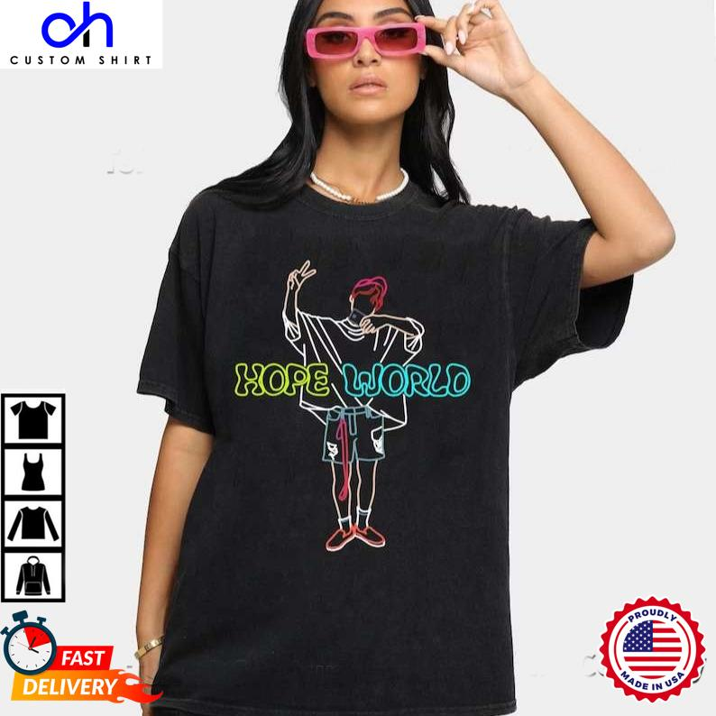 Introducing “Hope World J-Hope BTS T-Shirt” – The Ultimate T-Shirt for Rapper Fans! Express your unwavering love for rap music with “Hope World J-Hope BTS T-Shirt,” the perfect t-shirt designed specifically for avid rap enthusiasts. This exceptional garment not only allows you to display your passion for rap in style but also offers unmatched comfort and premium quality.