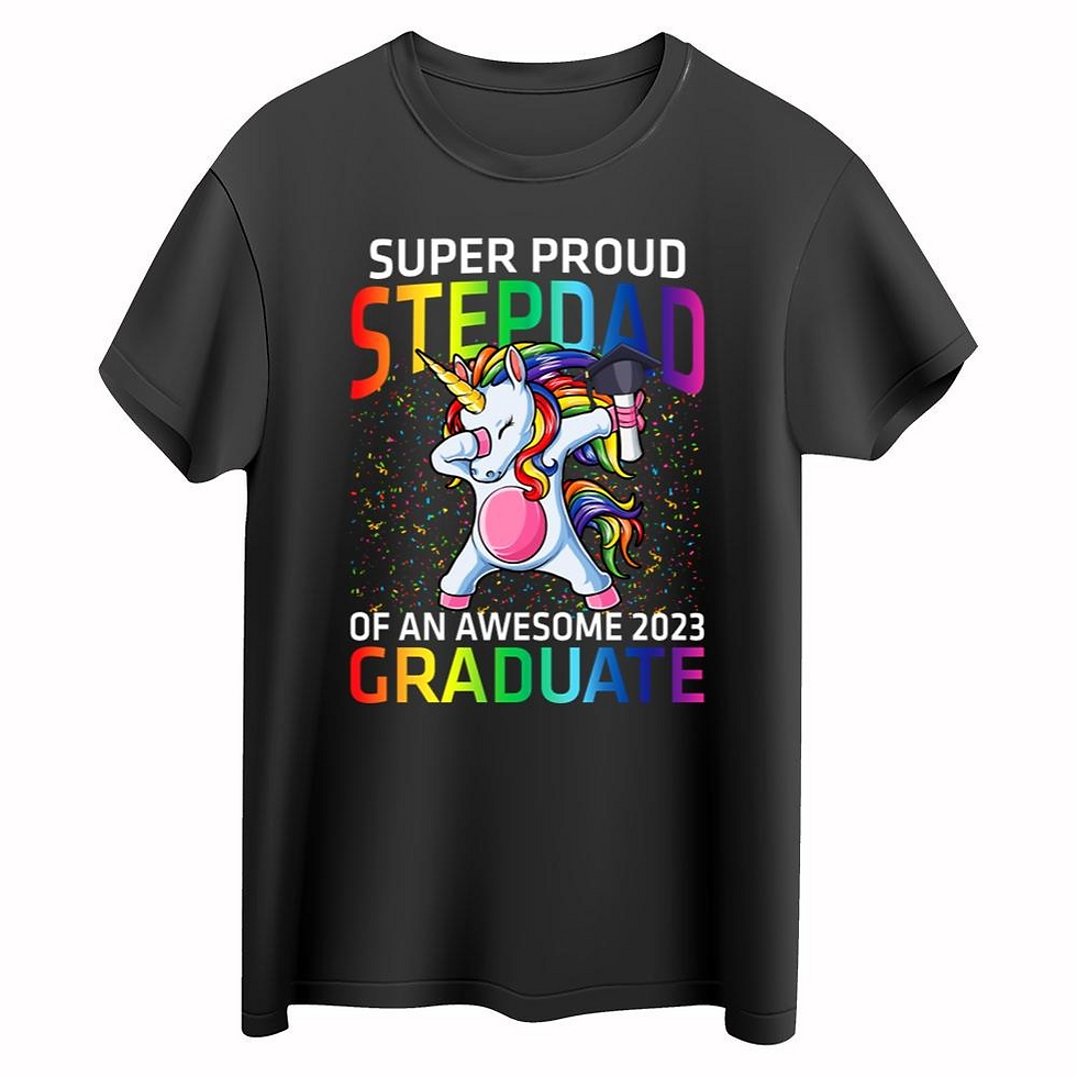 Get it here: https://ohcustomshirt.com/product/super-proud-stepdad-of-an-awesome-2023-graduate-unicorn-t-shirt/